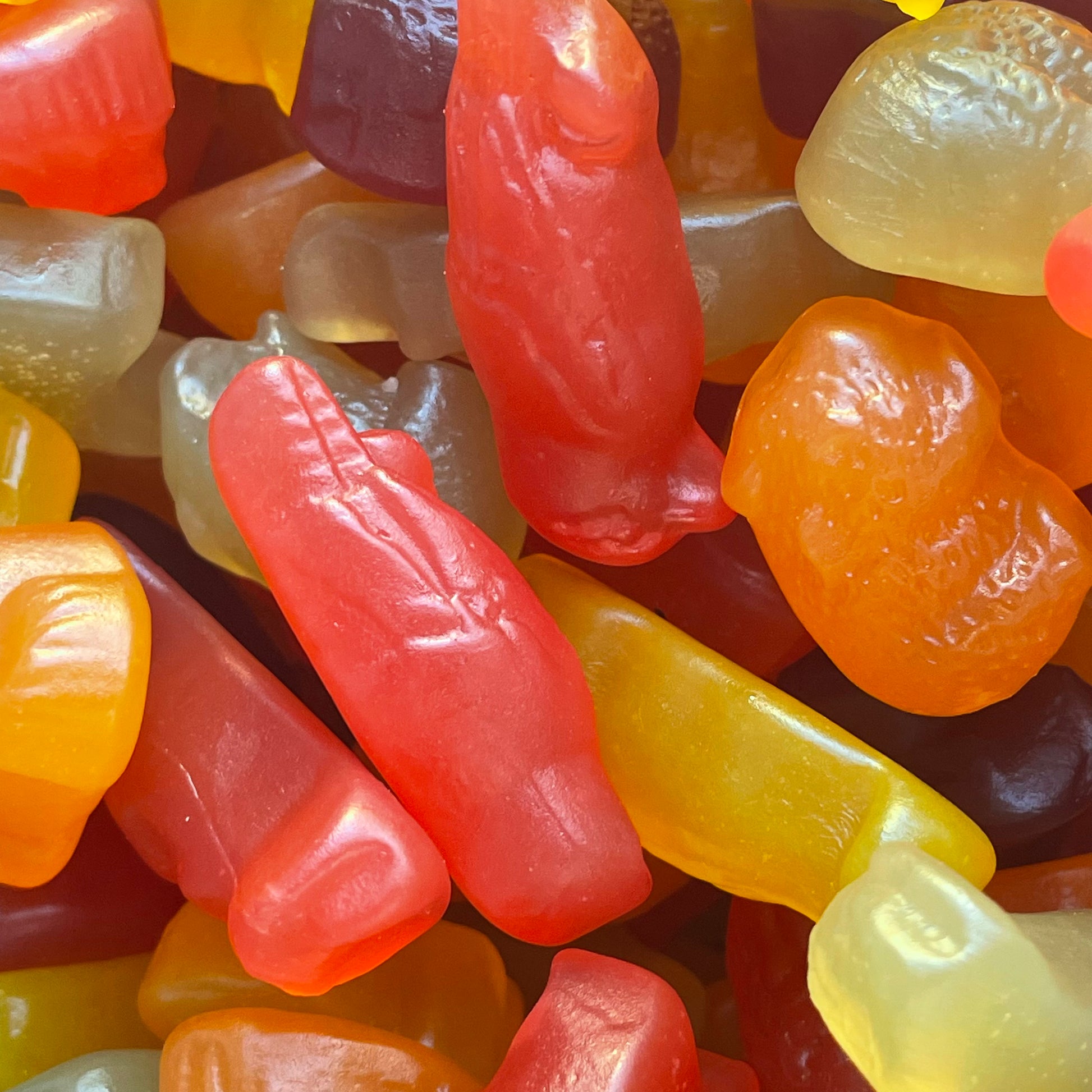 glucose (maize), raw sugar, water, starch (maize), acidity regulators (331, 330), natural flavours, natural colours (100, 163, 160b, safflower ext., gardenia conc., 171), coconut oil, carnauba wax).